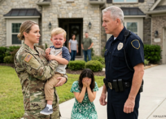 The response was immediate—a harsh slap across his face. “Keep your mouth shut, you little pest.” He hit the ground hard and didn’t move. Still, she sneered. “I’m tired of that fake hero nonsense. A medal for failure.” So I called the police. She laughed—right up until her own father dropped to his knees and begged me to stop. The backyard smelled thick of charcoal smoke, grilled meat, and cheap perfume. It was the Fourth of July—everyone else celebrating freedom—while I stood there feeling like a stranger in my own…