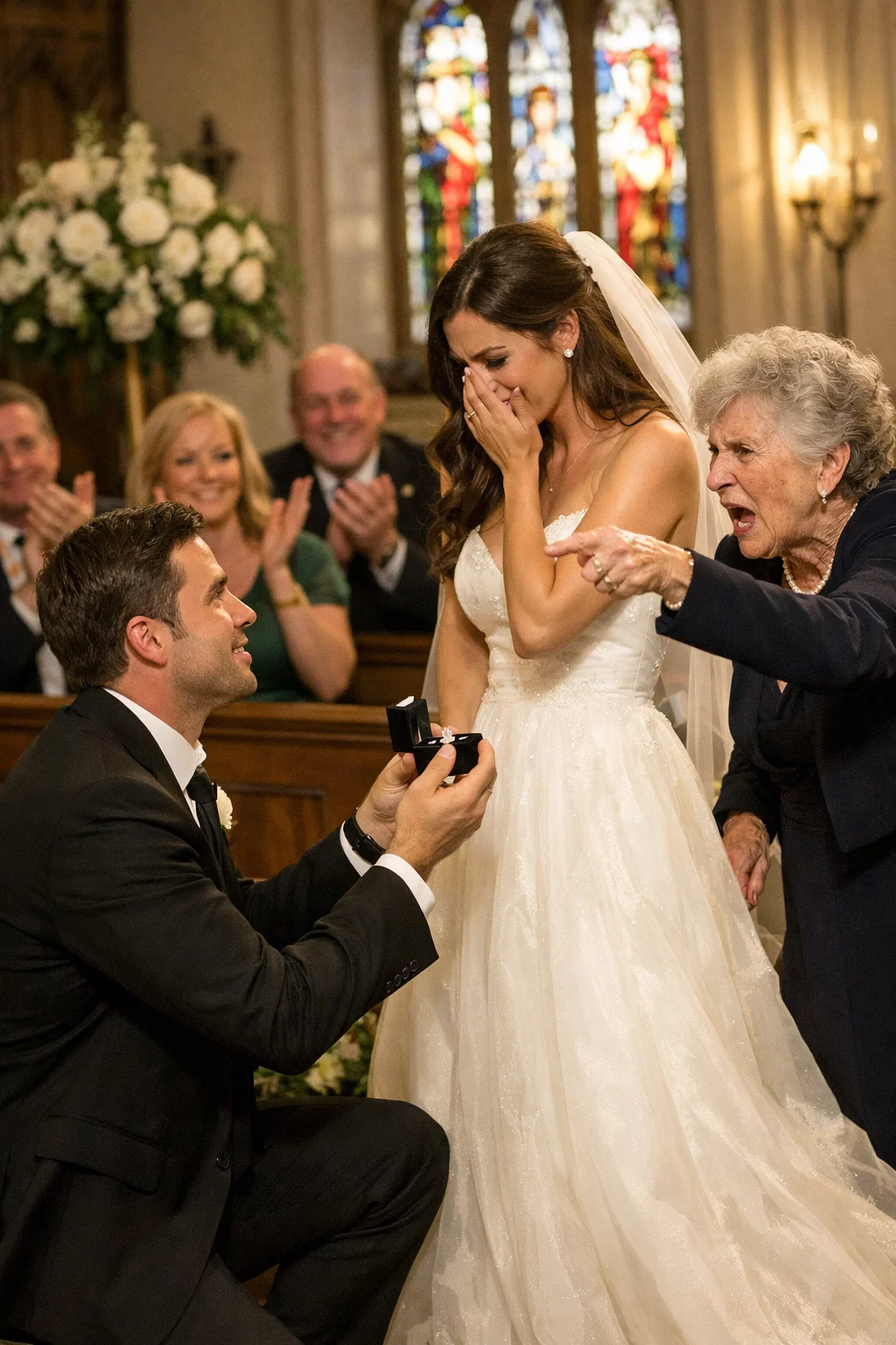 Part 1: The Altar of Deceit The silence in St. Jude’s Cathedral wasn’t peaceful; it was heavy, suffocating, and thick with judgment. I stood at the altar, my hands clutching a bouquet of white roses so tightly that the thorns were beginning to pierce through the silk ribbon and into my palms. The pain was grounding. It was the only thing keeping me from fainting. It had been forty-five minutes. The organist had stopped playing the prelude twenty minutes ago. Now, the only sound in the cavernous, vaulted space was…