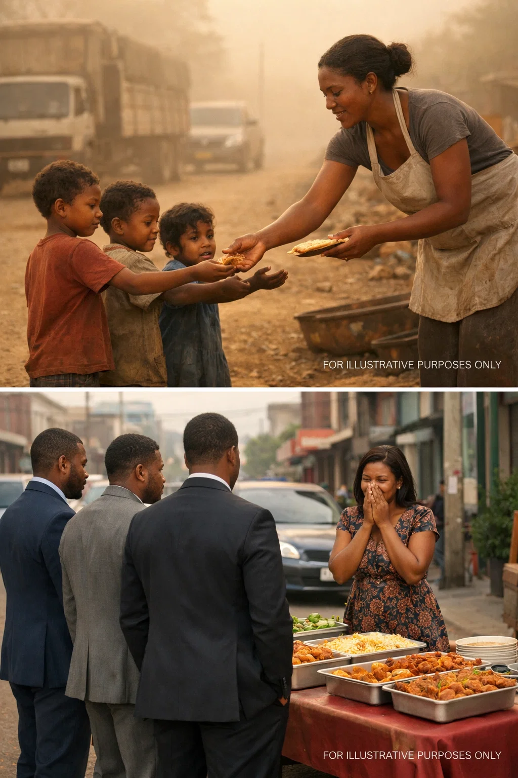 SHE FED THREE STARVING CHILDREN HER LAST MEAL… YEARS LATER, THREE G-WAGONS STOPPED AT HER STALL