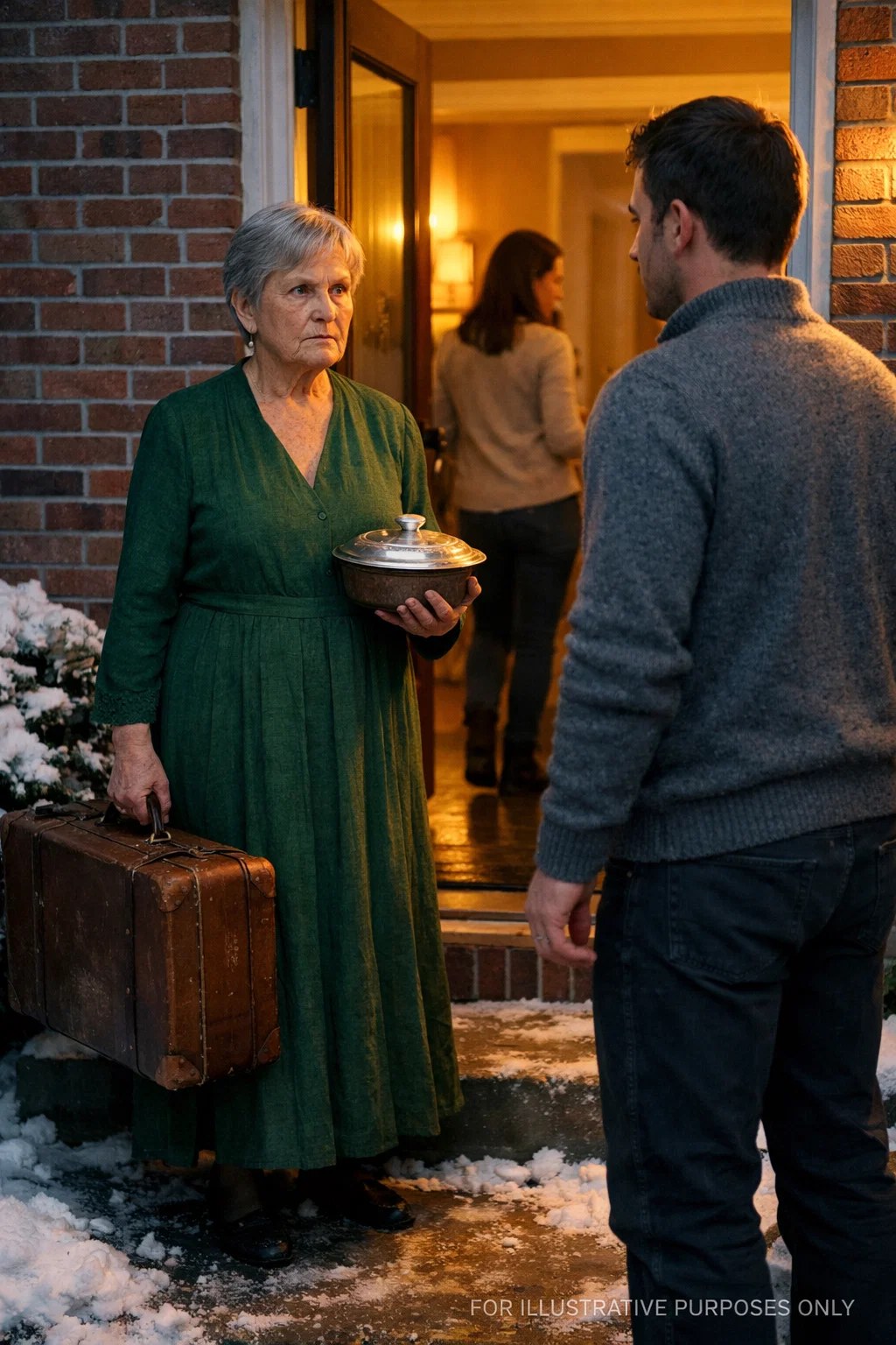 The cold cut straight through my coat. Not the dramatic kind of cold people post about online. The humiliating kind. The kind that makes your eyes water and your hands shake while you stand on your own child’s welcome mat trying to understand whether what just happened was real. My name is Evelyn Carter. I was sixty-eight that winter, and I had flown from Ohio to the suburbs of D.C. with one carry-on, one wrapped gift for each grandchild, and a dress I bought on clearance because I wanted to…