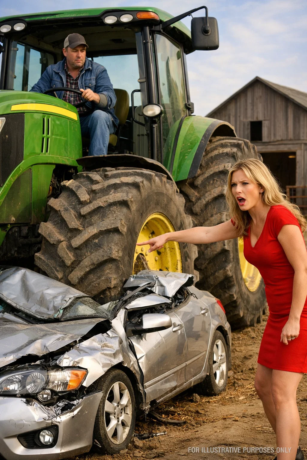 I still remember that morning like it burned itself into my mind The kind of morning that starts quiet with dew on the grass and the low sound of cattle waiting for feed I stepped off my porch with a bucket in one hand and coffee in the other expecting nothing more than another day of work Instead I found a luxury car parked sideways across my barn door blocking everything Not just parked but placed there like a statement like a line drawn in the dirt And leaning against…