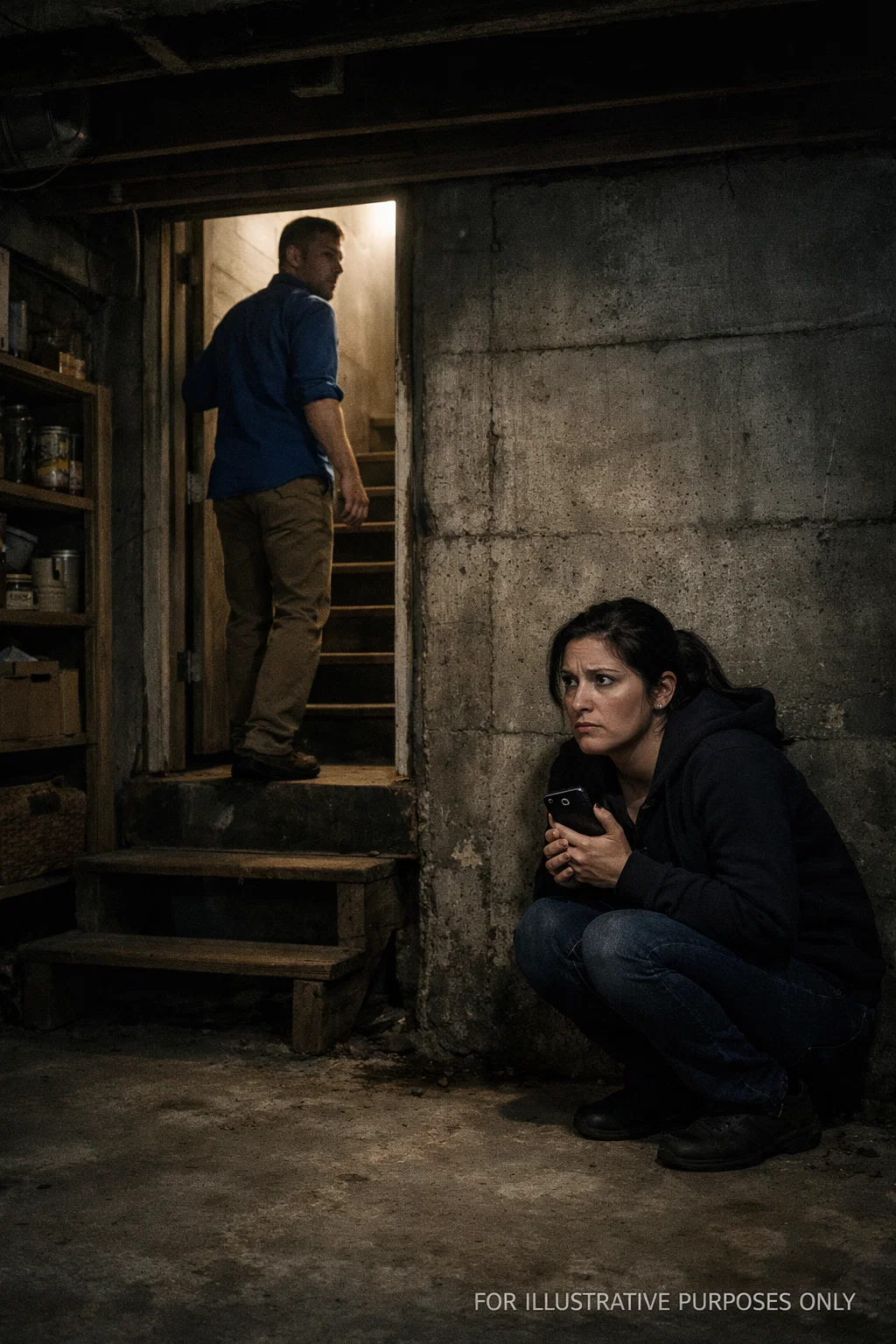 The basement was unfinished except for a workbench, storage shelves, and a small window too high and narrow to climb through.