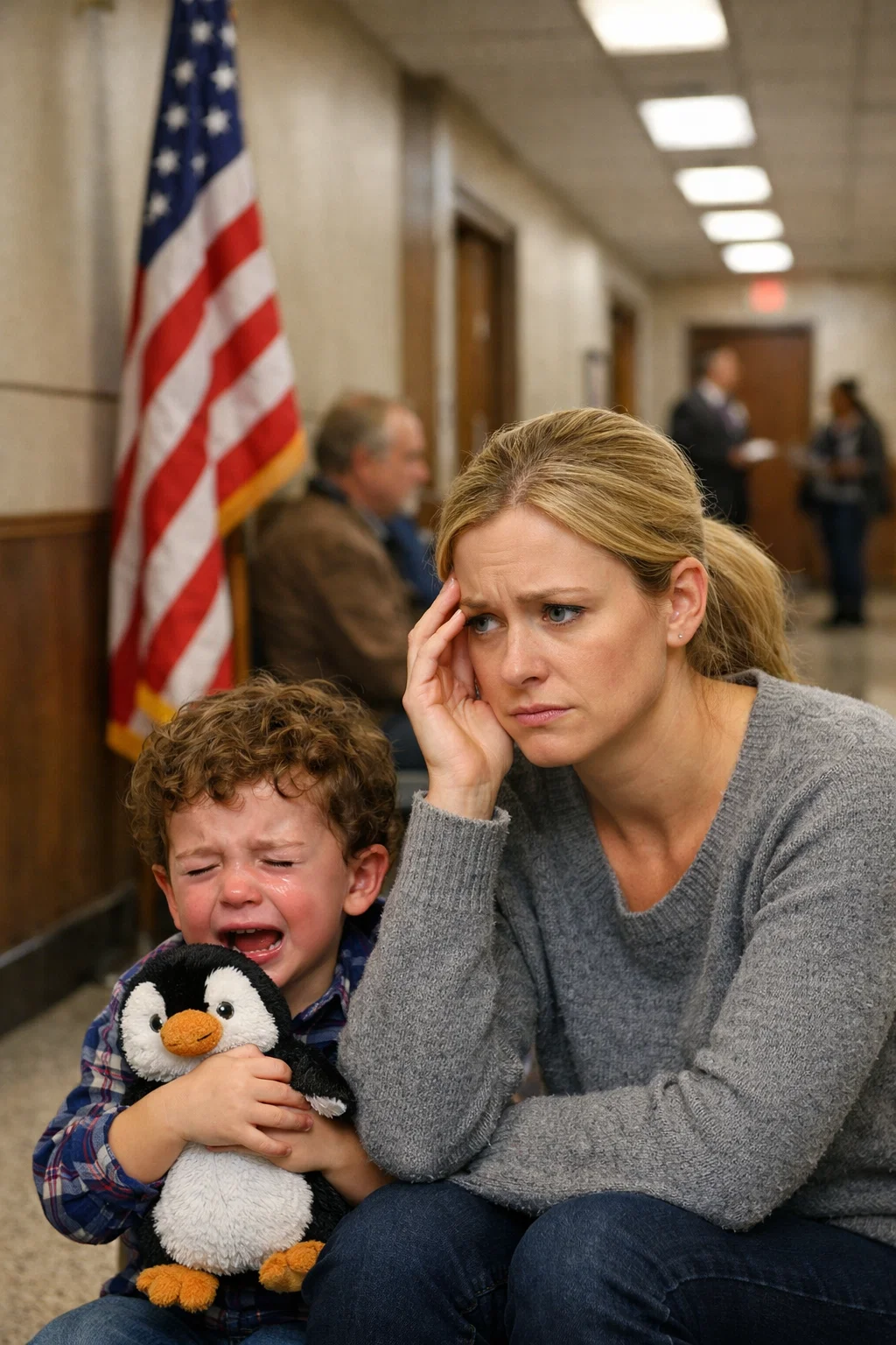 His stuffed penguin—the one my grandmother gave him before she died, the one he’d carried everywhere for six years—lay on the carpet beside him with one button eye missing.
