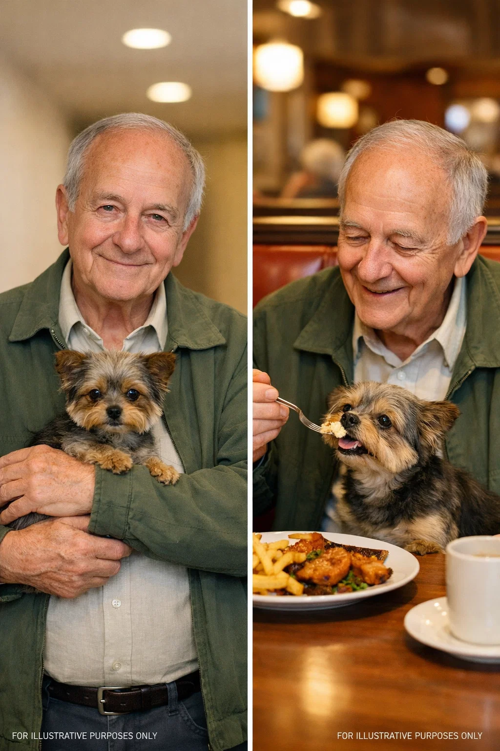 When I brought everything out, I placed the full meal in front of the old man and bent down to place the saucer on the floor. The dog looked up at me like I was some kind of magician.