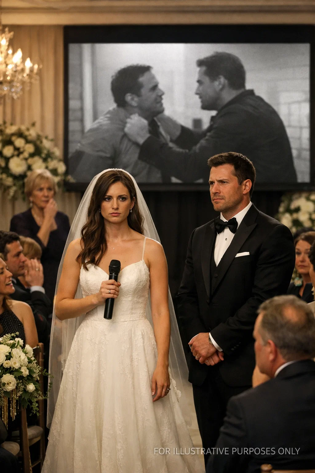 Instead, I turned toward the AV booth and nodded at my college friend Danielle, the only bridesmaid I had trusted with the truth that morning. The first sound that filled the chapel was not music. It was Everett’s voice from the hotel suite, sharp and vicious over the speakers. Everyone heard him demanding my signature. Everyone heard me refusing. Then came the crash, my cry, and his threat telling me I would smile through the wedding or regret it. Gasps swept through the room like wind through dry leaves. One of Everett’s groomsmen actually stepped away from him.