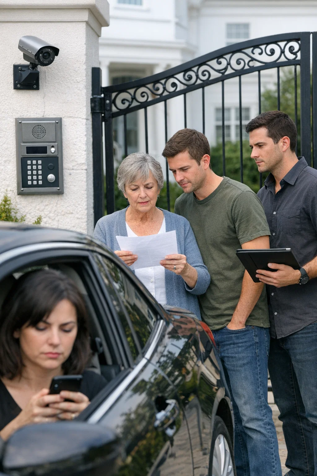 Instead, she found an official notice sealed to the gate—revocation of occupancy rights—and a placard from a security company announcing a change in access control.