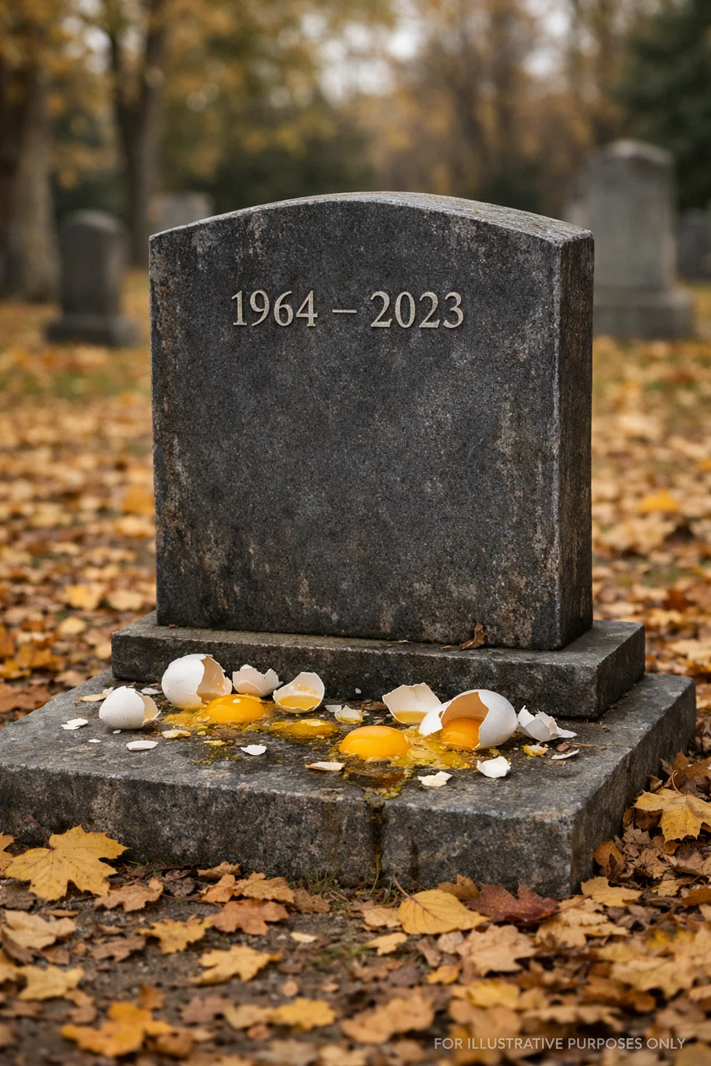 A gravestone covered in eggshells | Source: Midjourney