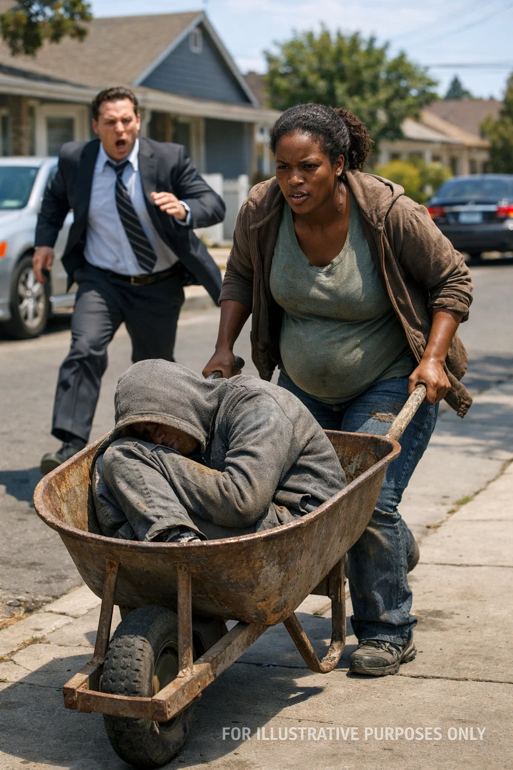 The sun was already high when Jane pushed her rusty wheelbarrow into the market. Her hands were rough and calloused, but she didn’t mind. The market was noisy—women shouting prices, children chasing each other between stalls, and the smell of roasted corn and pepper soup filling the air. Jane was pregnant, maybe seven months along, and her belly made everything harder, but she refused to beg.