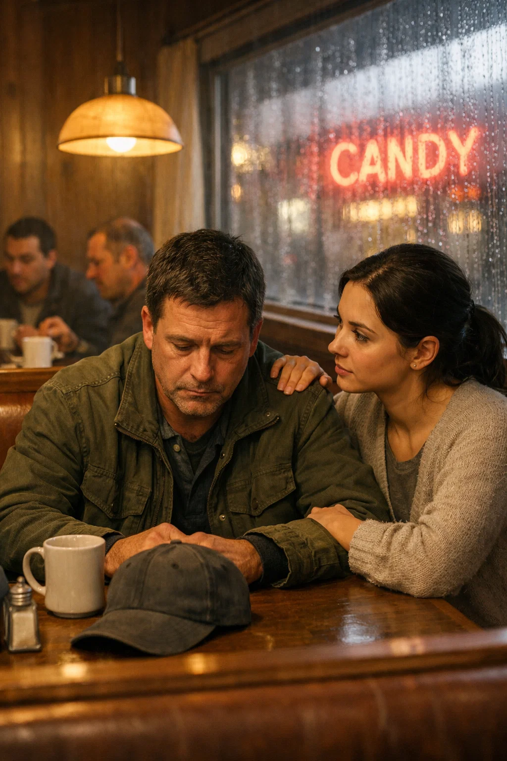 For a few minutes, the diner returned to its usual rhythm, or something close to it. The rain continued outside, steady and unrelenting. A couple at the counter spoke in low voices. Someone laughed too loudly at something that wasn’t particularly funny.