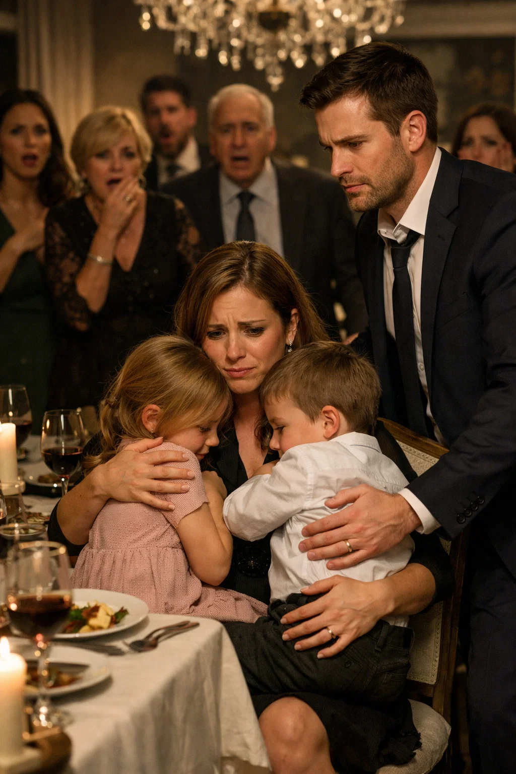 Hannah, my oldest, was eight years old and tall for her age, with the careful seriousness of a child who often observed more than adults realized. Claire, only five, leaned against my side while swinging her legs from the dining chair, her pink dress rustling softly whenever she moved.