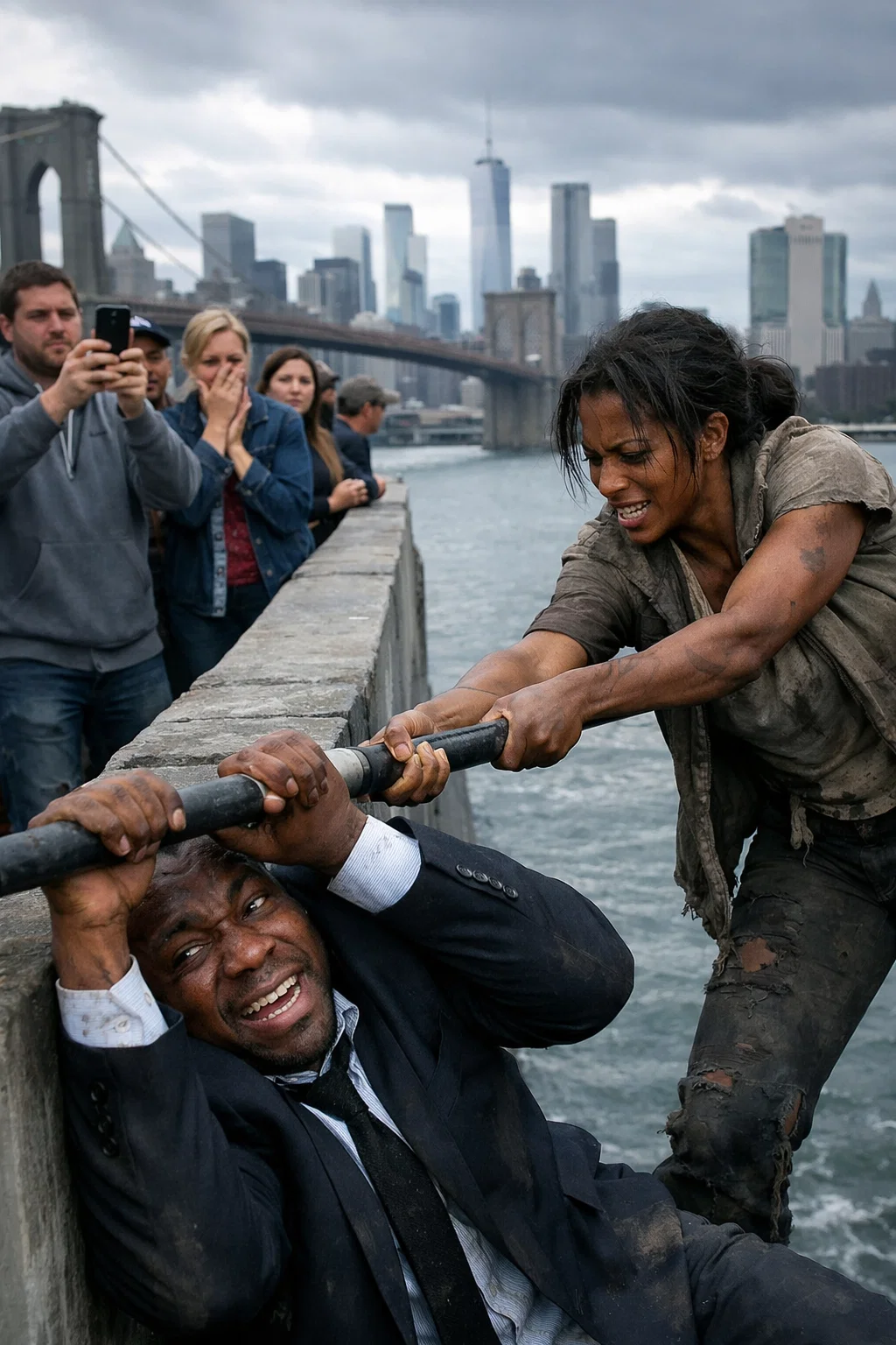 He was hanging off the bridge, screaming for help, his fingers slipping little by little, while the crowd just stood there watching. Some people shouted. Some pulled out their phones. But not one person dared to save him.