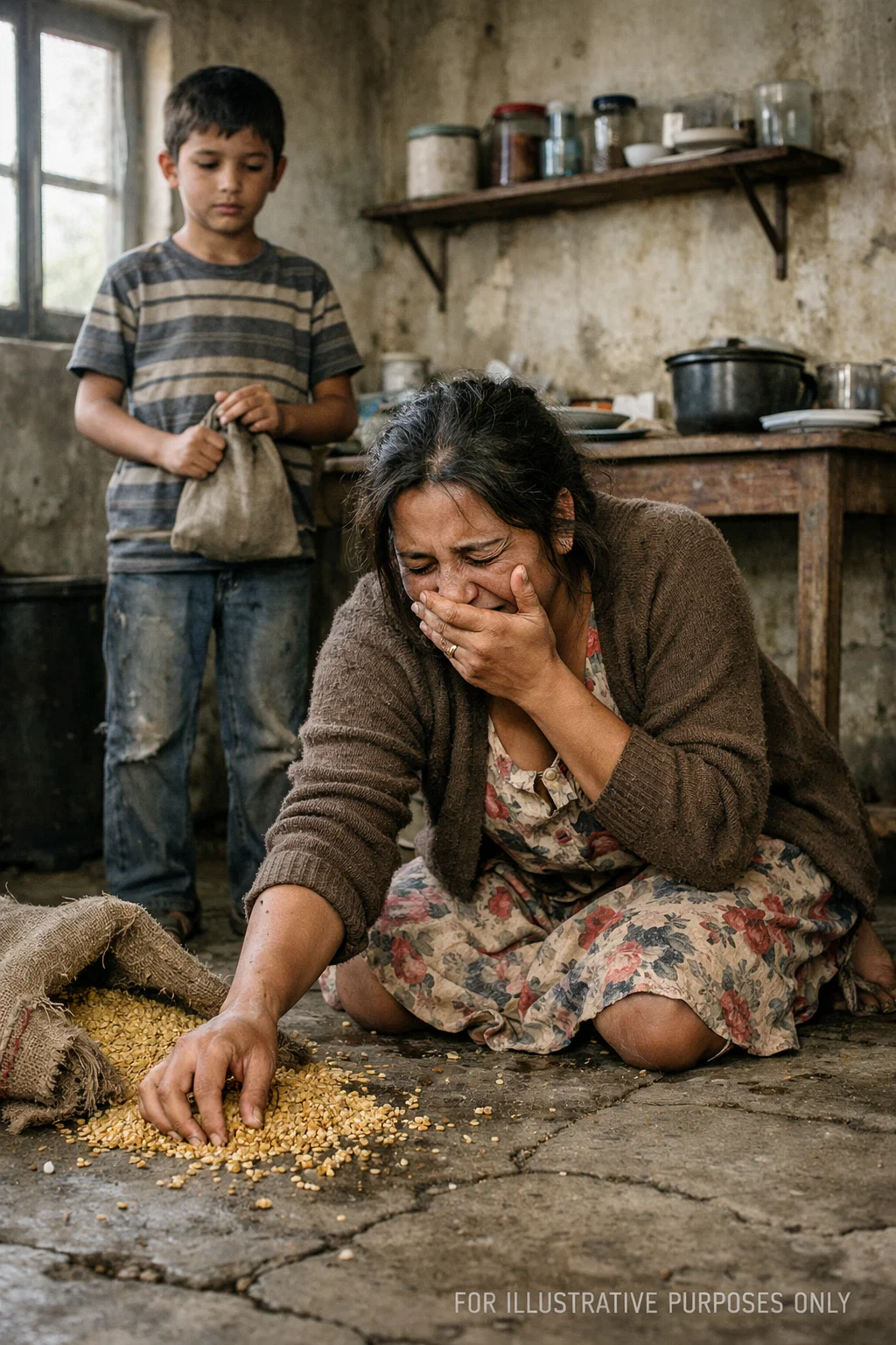 That morning, I found her sitting at the little wooden table in our kitchen, tipping the rice jar sideways and scraping the last grains out with two fingers. The sound they made against the glass was soft, but to me it felt louder than any shout.
