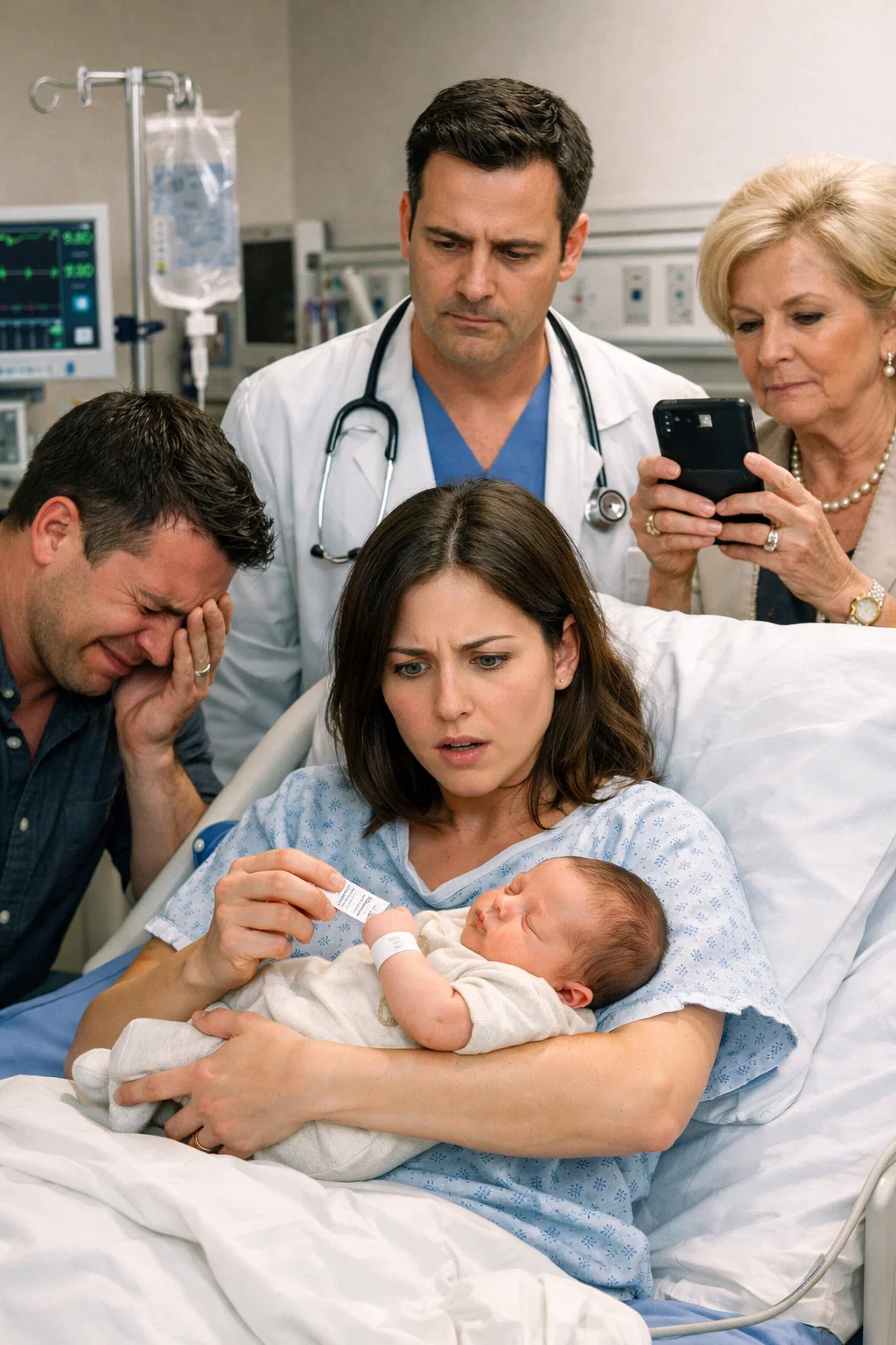 The moment the nurse placed my newborn daughter in my arms, I knew something was wrong. My husband was crying with joy, my mother-in-law kept snapping photos, but I couldn’t stop staring at the baby’s wrist. The name band had my last name on it… but the birth date was wrong. The second I asked about it, the room fell into a terrifying silence. And the head doctor looked at me like he had made a mistake he could never undo.