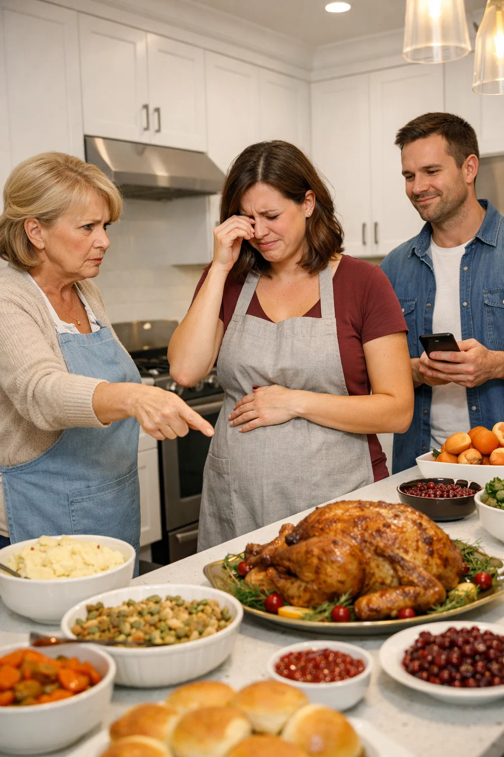 By the time I was seven months pregnant, the situation had grown difficult. On Christmas Eve, I spent the entire day preparing dinner for the extended family gathering while my husband entertained guests in the dining room. I moved carefully through the kitchen, exhausted but determined to make the evening special. When the meal was finally served, the room looked perfect—crystal glasses, polished silverware, and a beautifully decorated table. Yet the atmosphere toward me was anything but warm. Small criticisms about the food and my slow pace filled the room, and when I quietly asked if I could sit for a moment because my back hurt, my request was dismissed. In that moment, I realized how little support I truly had from the people who were supposed to care about me.