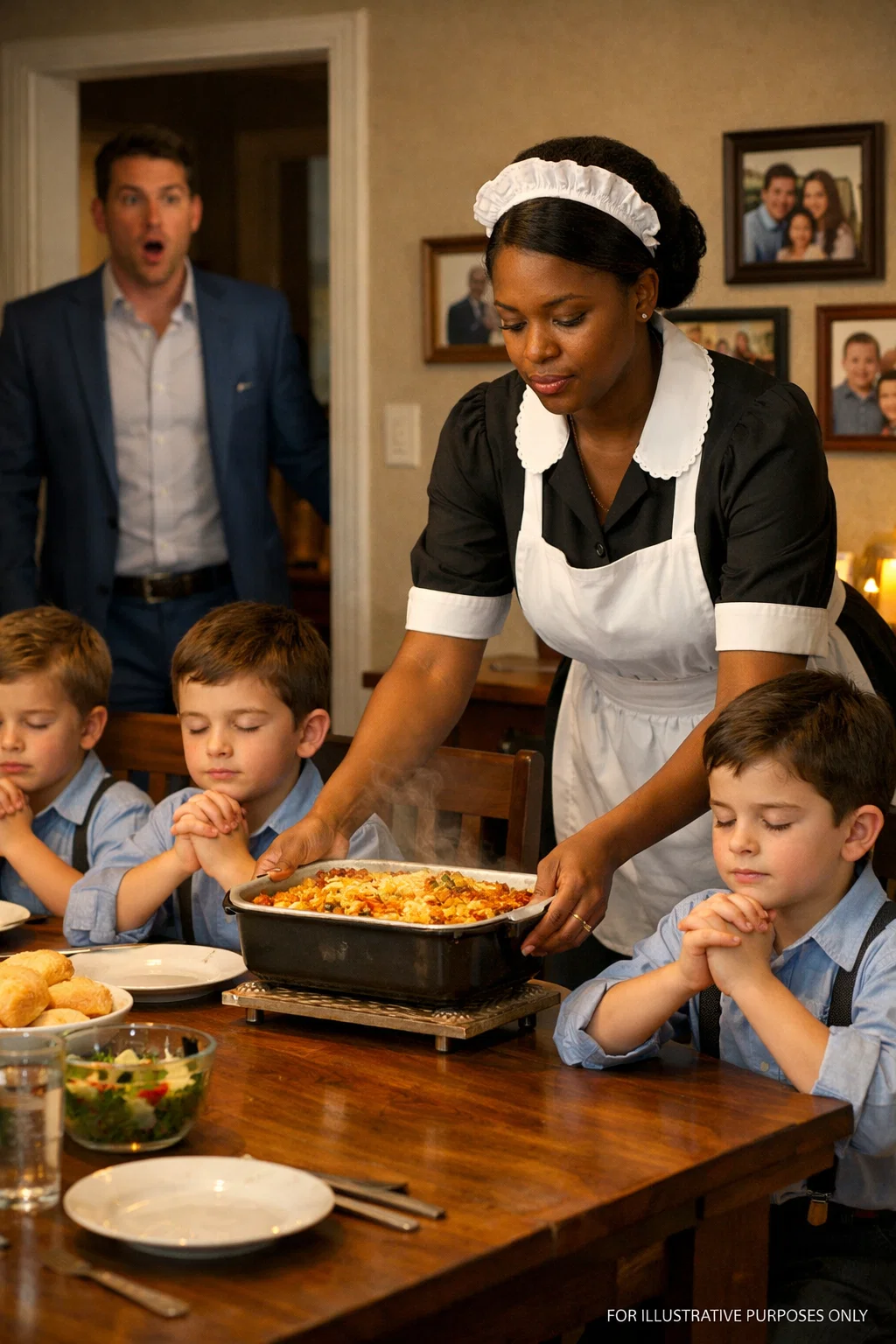 Susanna stood at the head of the table with her eyes closed, guiding the prayer in a calm, steady voice. “Thank you for this food, thank you for this home, and thank you for these four children who are learning they no longer have to be afraid,” she said.